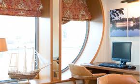 - Handcrafted Savoir® of England bed, built-in closet, hair dryer, safe, individual thermostat, flat-screen TV with infotainment center and satellite, and bottled water